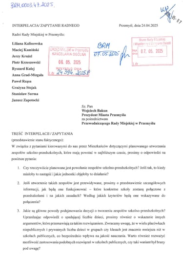 Interpelacja w sprawie reorganizacji jednostek oświatowych
