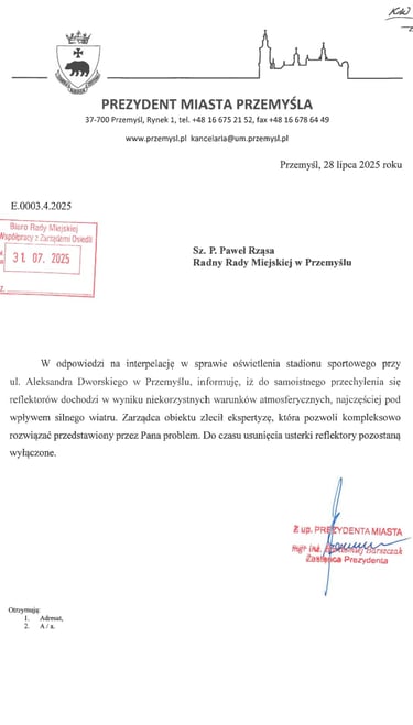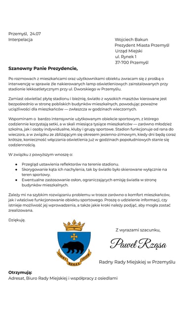 Interpelacja w sprawie instalacji świetlnej przy ulicy Dworskiego.